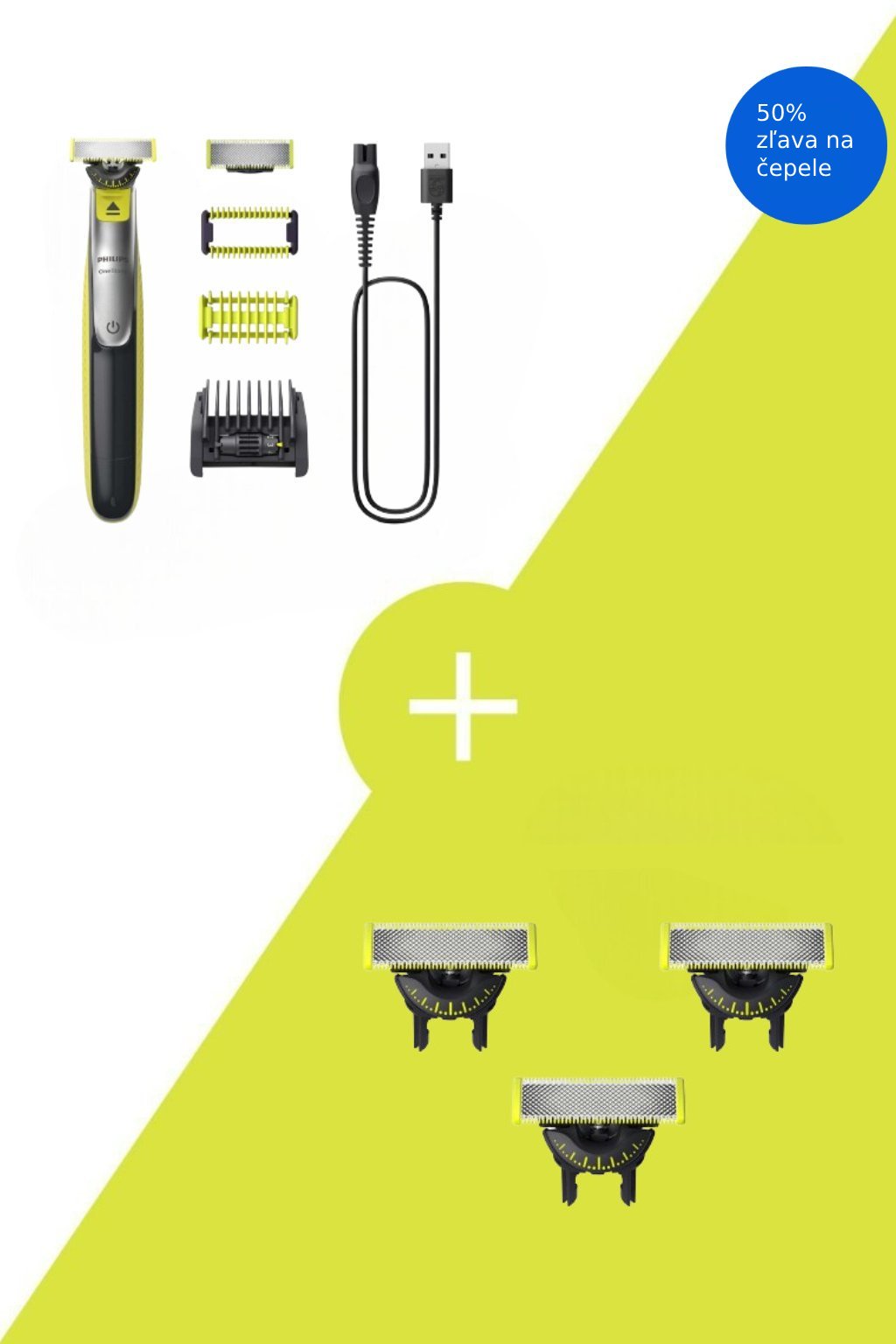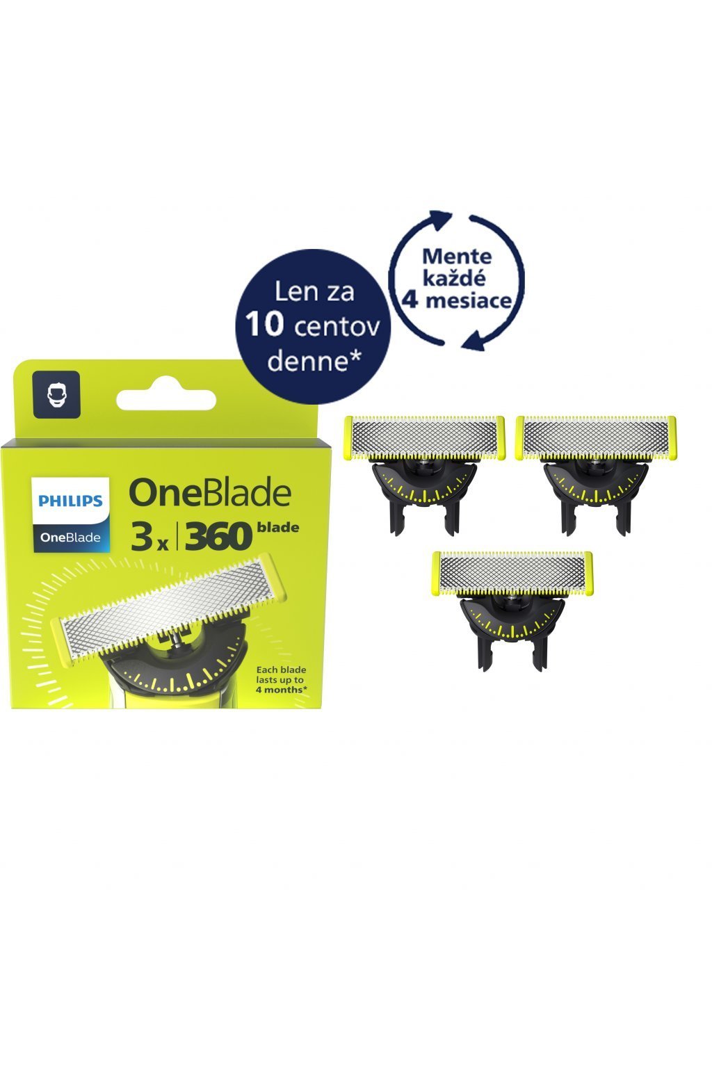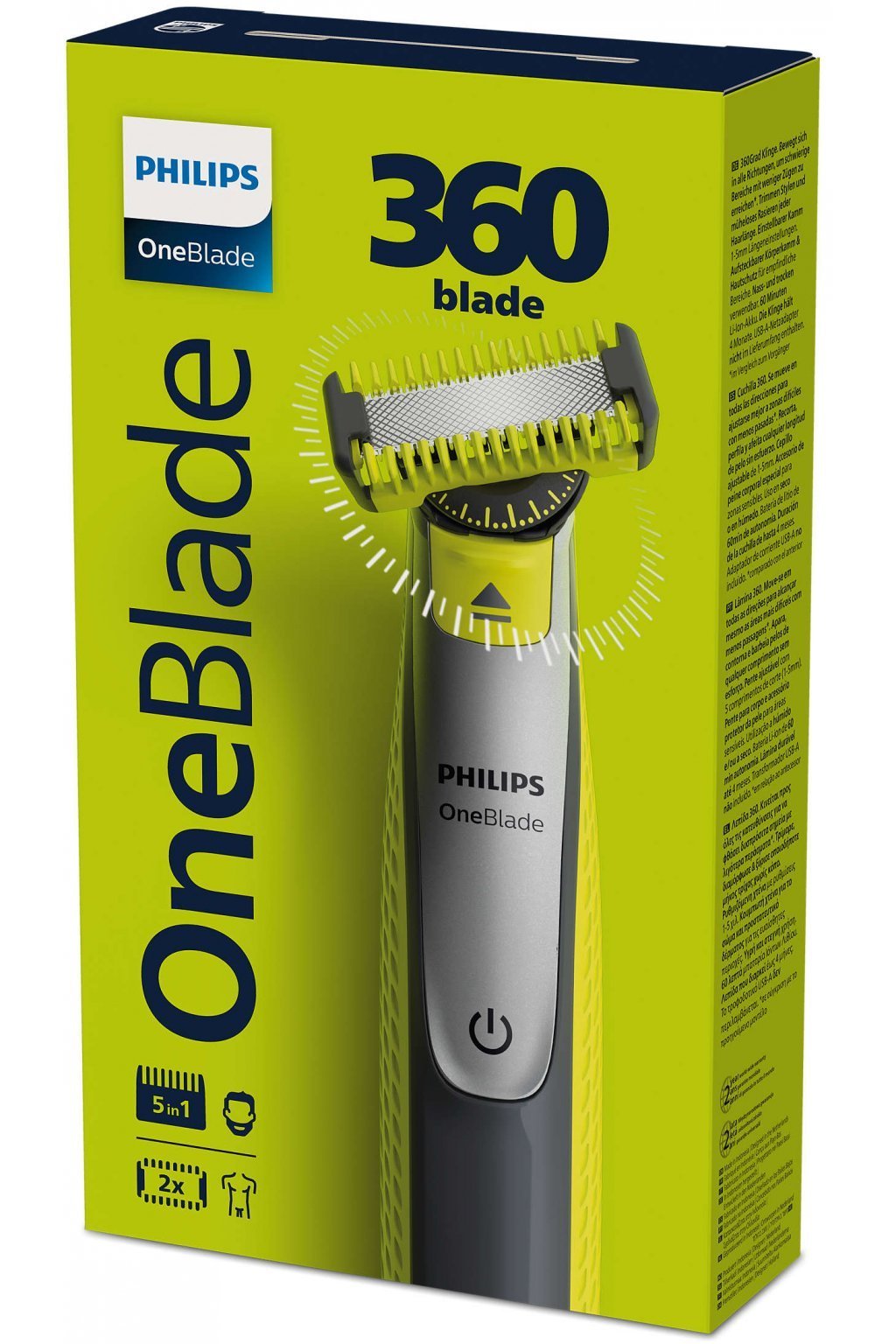 Výhodné balenie obsahuje Philips OneBlade 360 na tvár a telo QP2834/20 a 3 ks výmenných čepelí Philips OneBlade QP430/50.